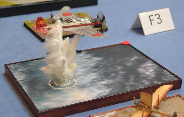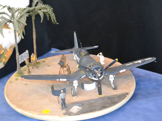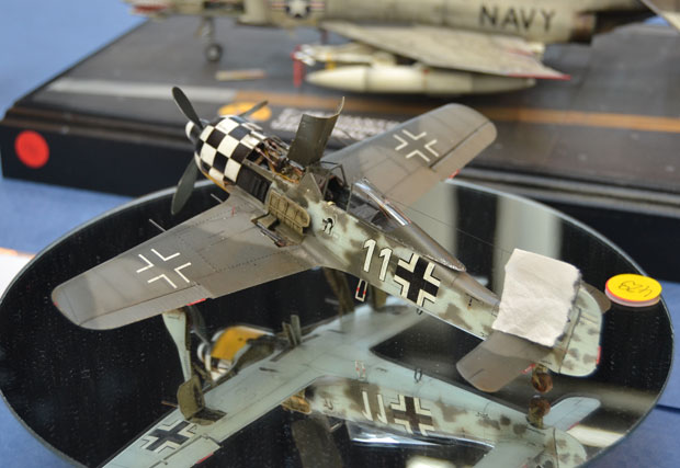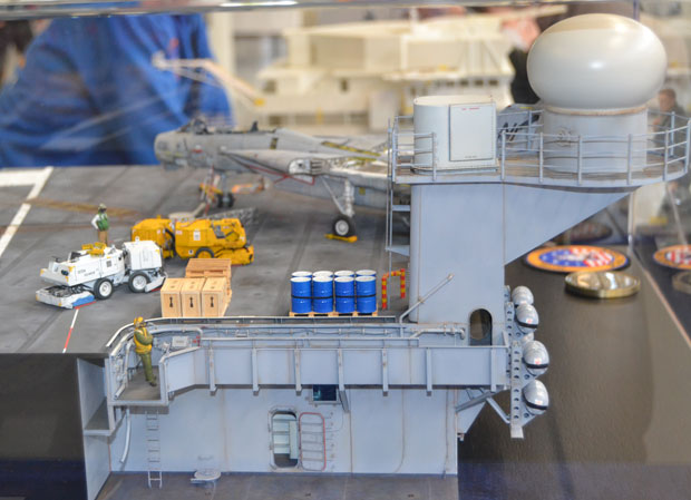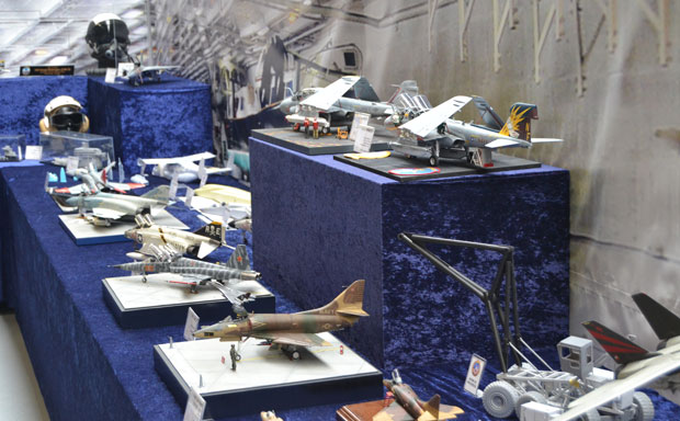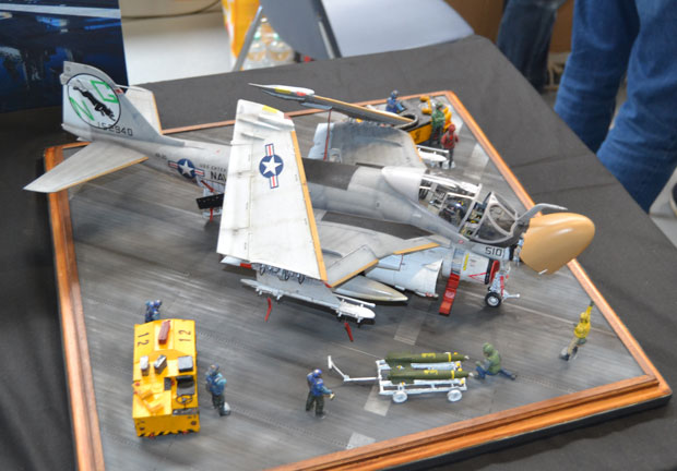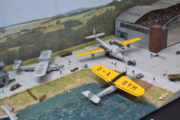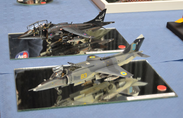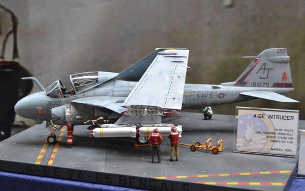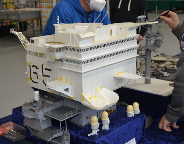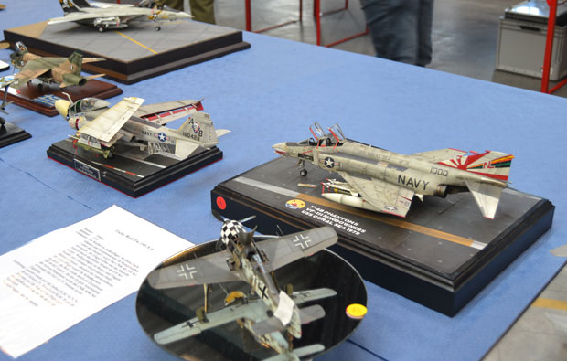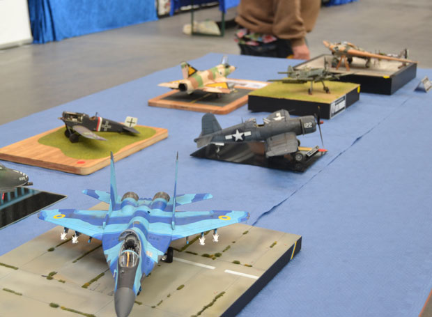 Flugzeuge gab es reichlich zu bewundern. Alle Maßstäbe waren vertreten. Bunt gemischt mit militärischen und zivilen Typen. Besonders interessant war ein Stand mit Segmenten eines scratch-gebauten Flugzeugträgers! Modellbau in Vollendung.