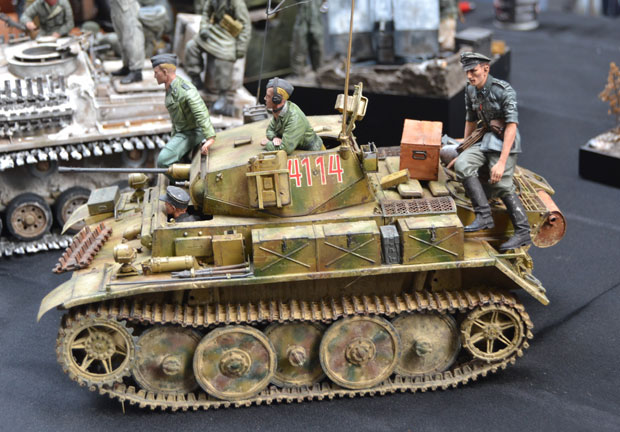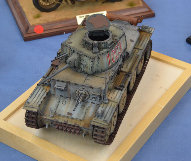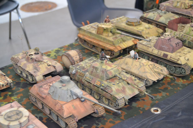 Militärfahrzeuge haben wohl den größten Bereich bei dieser Ausstellung eingenommen. Es zeigte sich, dass die größeren Maßstäbe, wie 1:24 und 1:16 immer mehr im Kommen sind. Die Hauptinteressen liegen, wie nicht anders zu erwarten war, in den Themen Erster und Zweiter Weltkrieg, aber auch moderne Konflikte waren zahlreich vertreten.